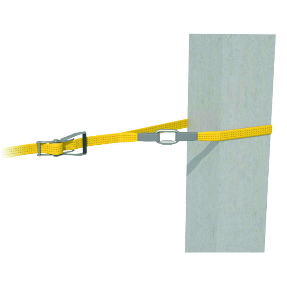 Una linea di vita temporanea in cinghia, variabile da 2 a 20 metri, permette a due operatori di lavorare simultaneamente in sicurezza. L’installazione è agevolata grazie al cricchetto incluso.